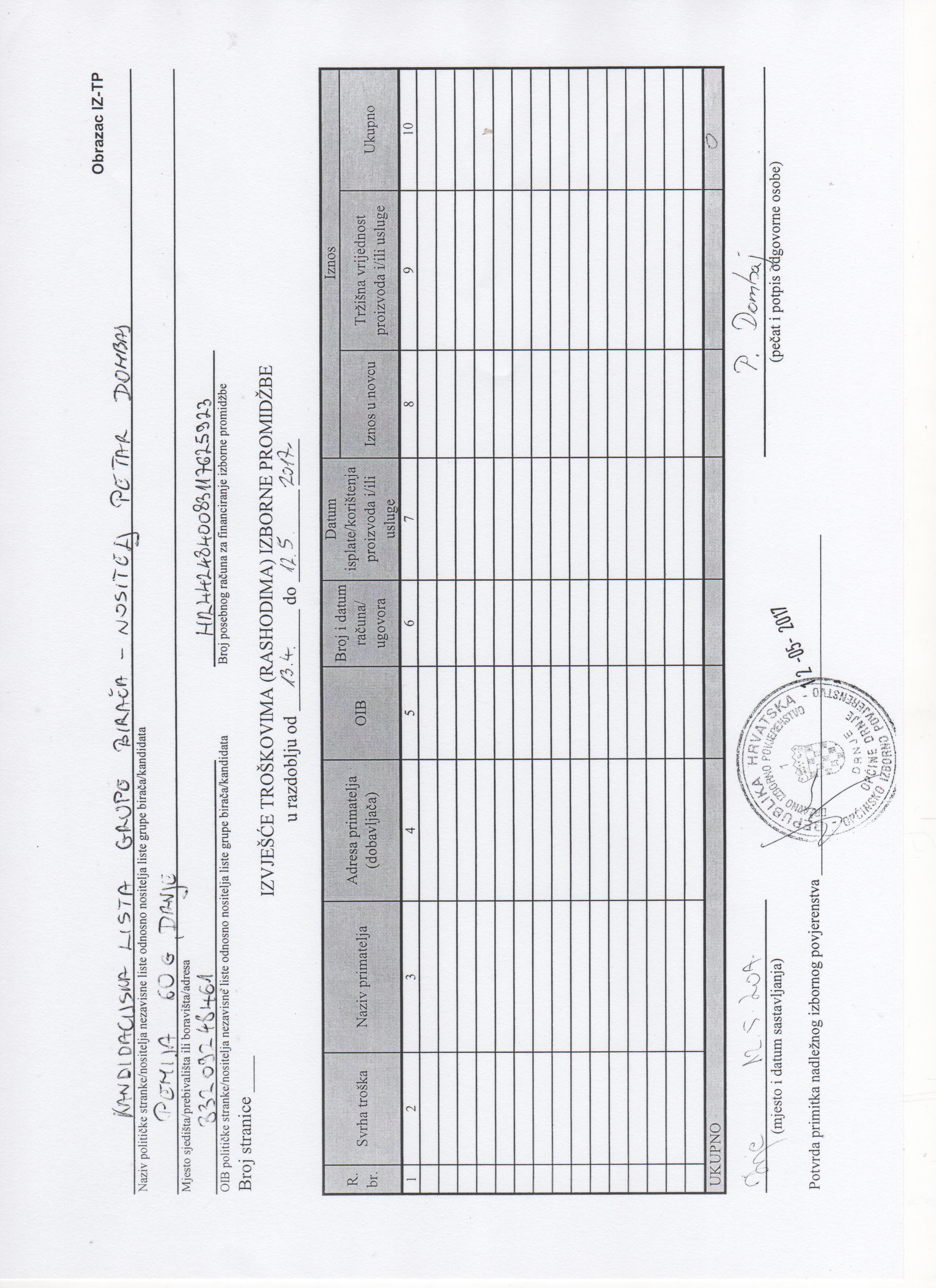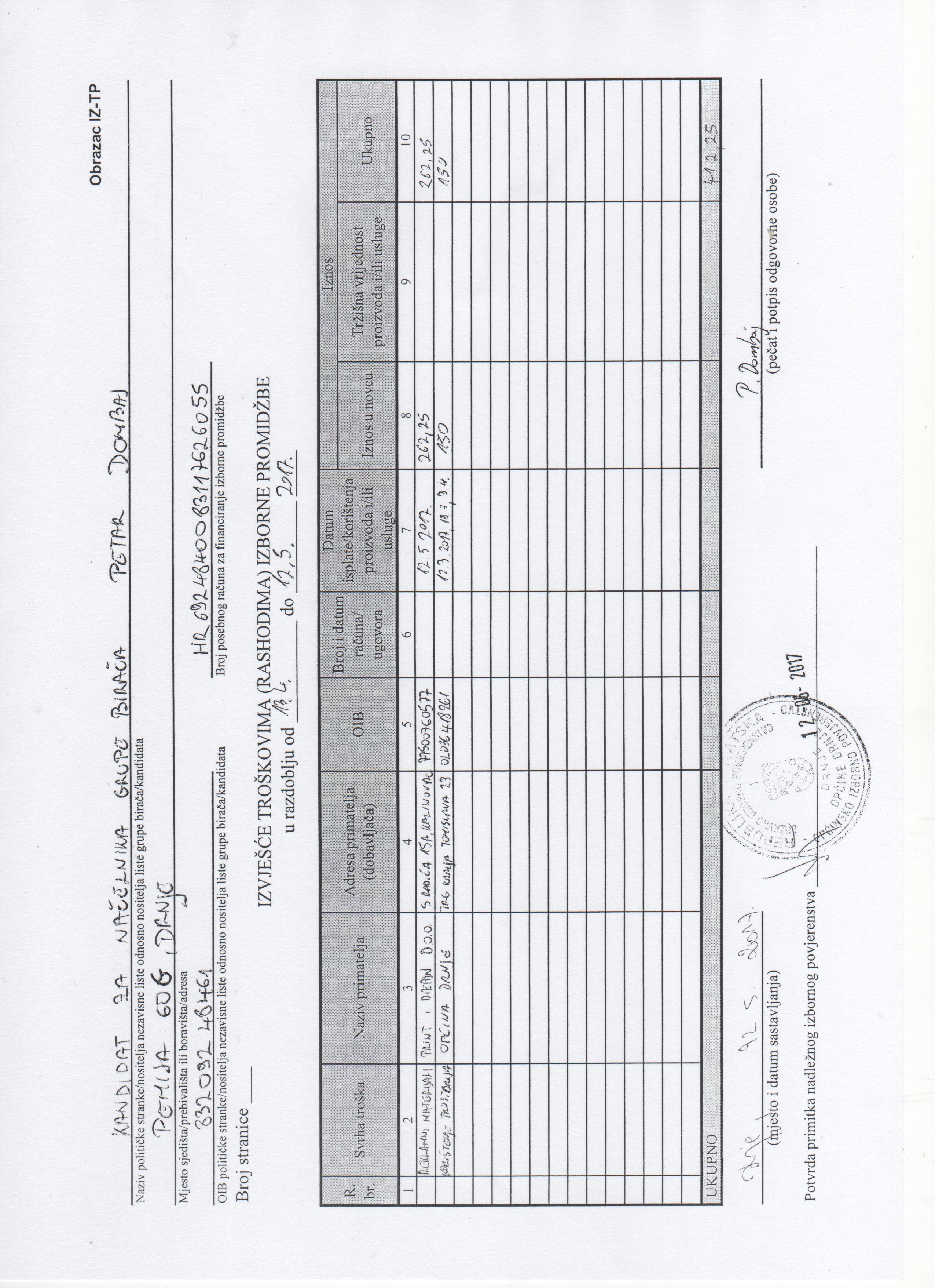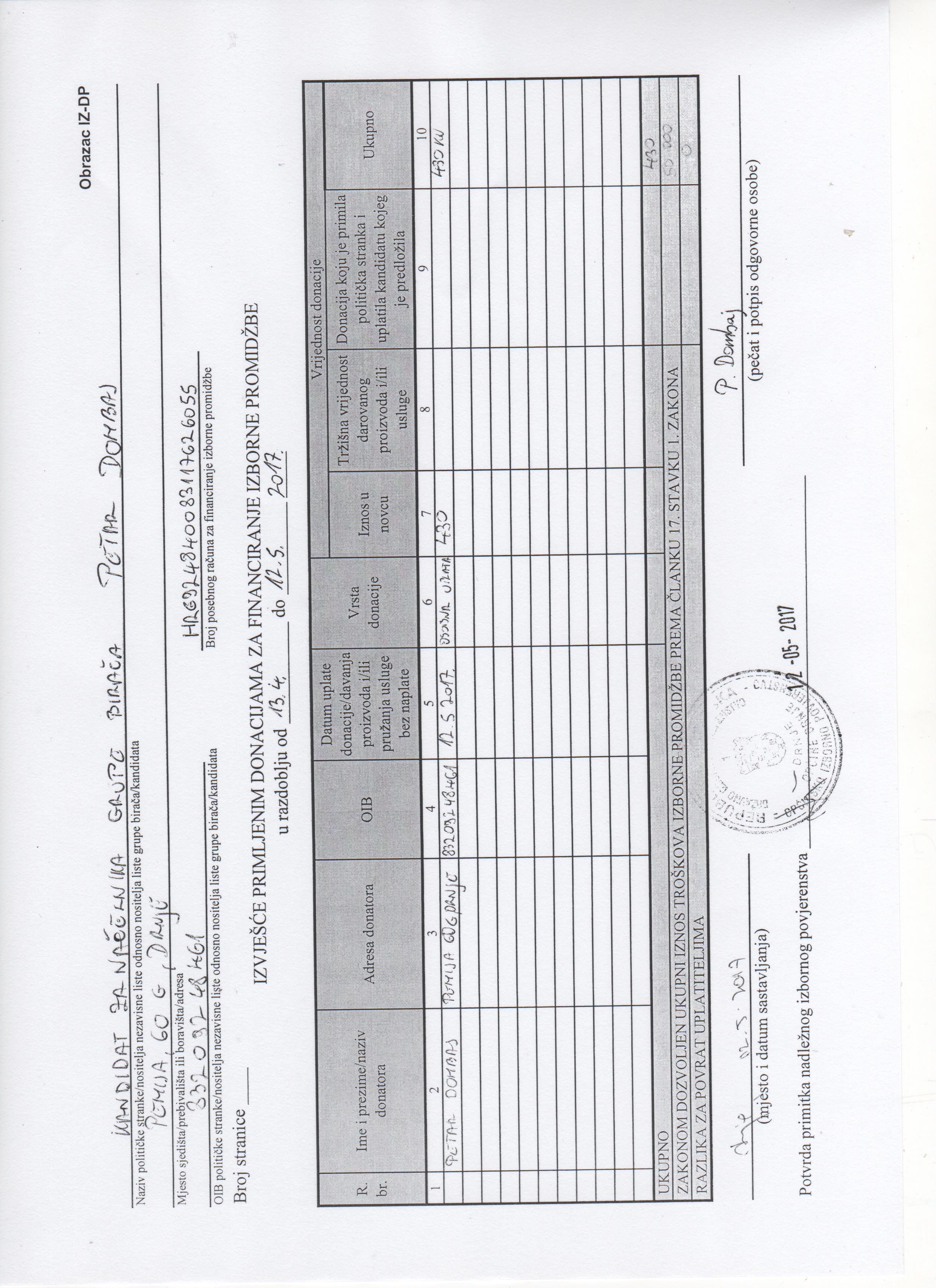 Početna stranica » Priopćenja i najave » Financijska izvješća za financiranje izborne promidžbe- Petar Dombaj kandidat za načelnika Općine Drnje