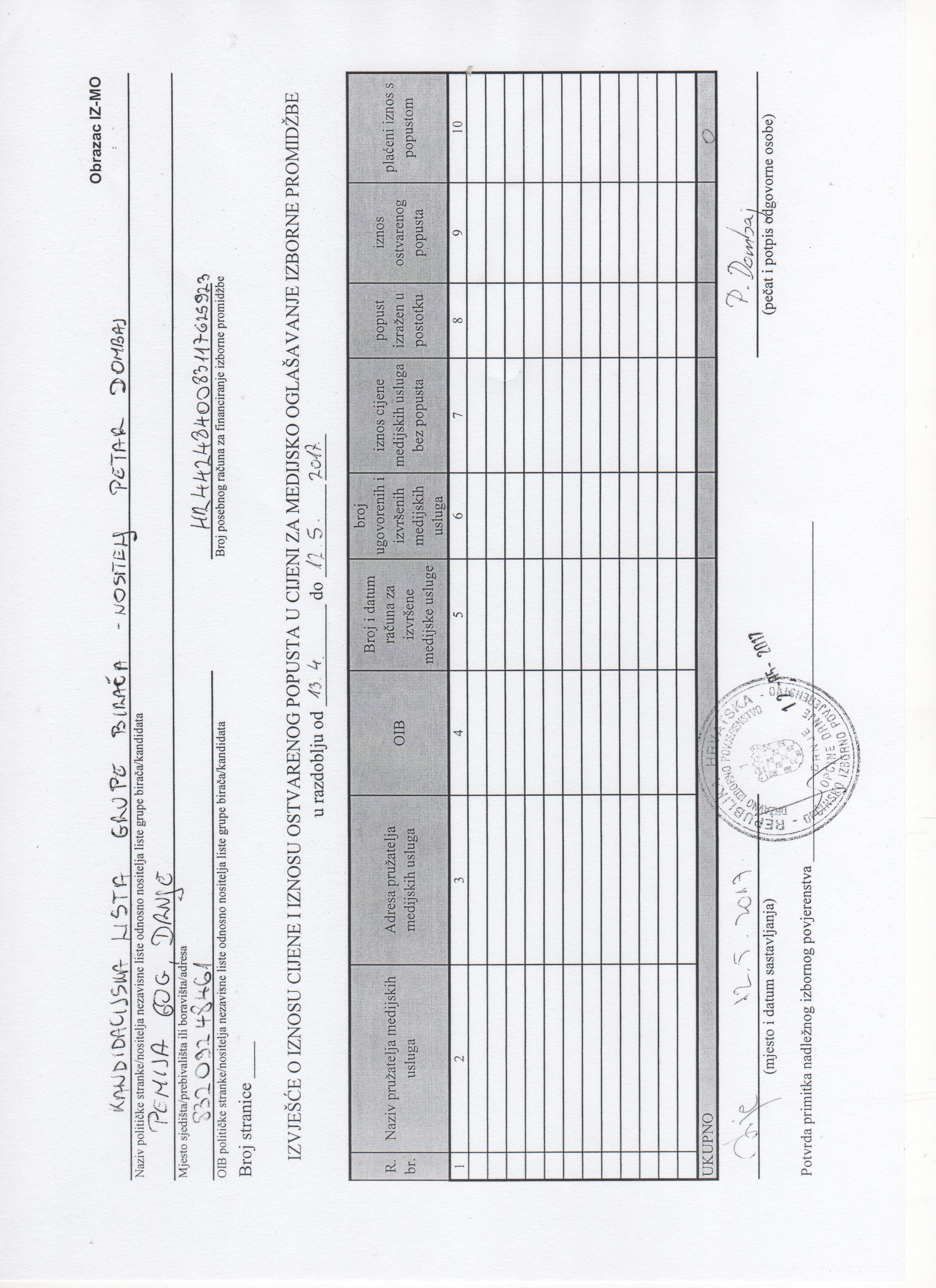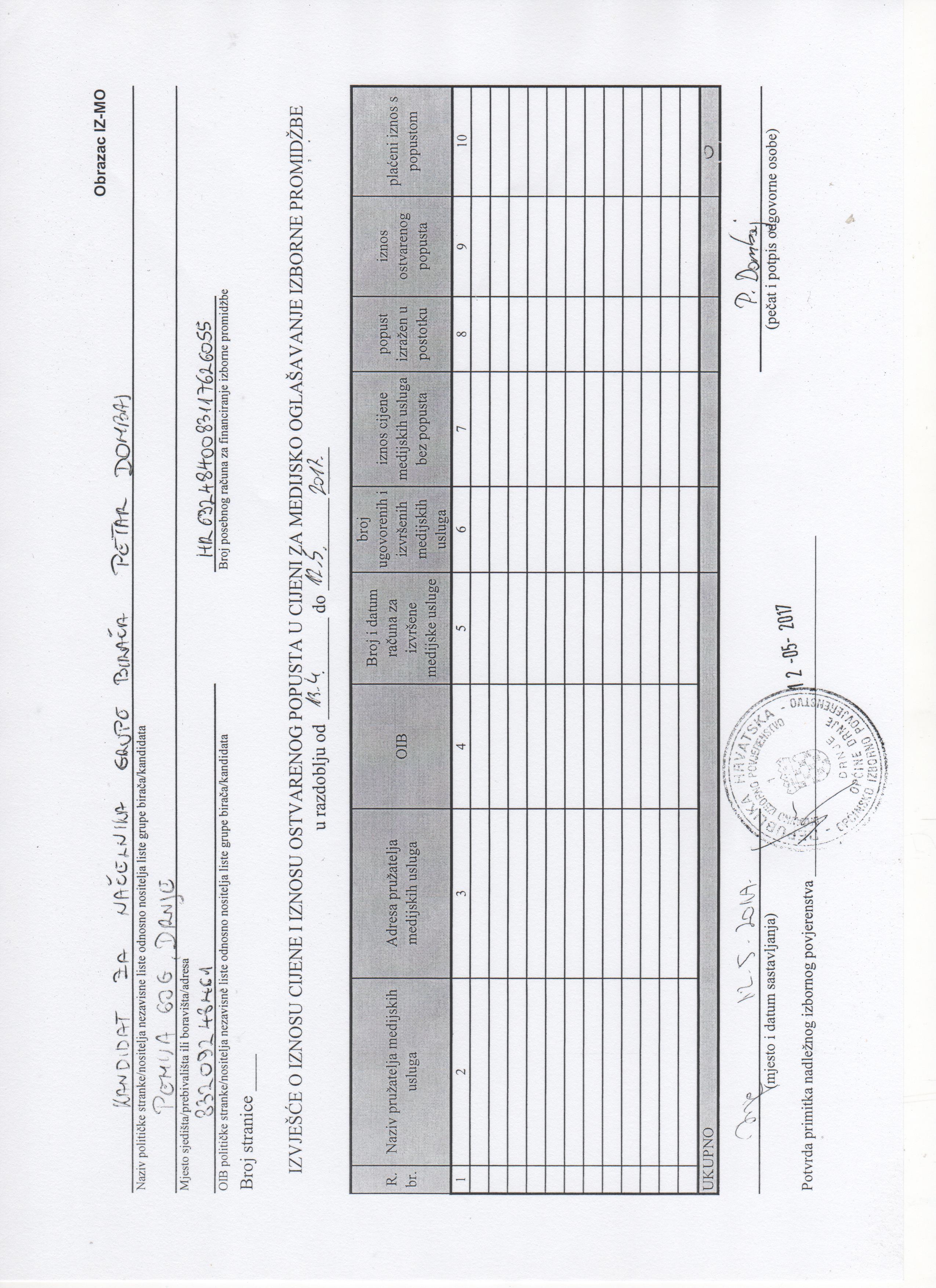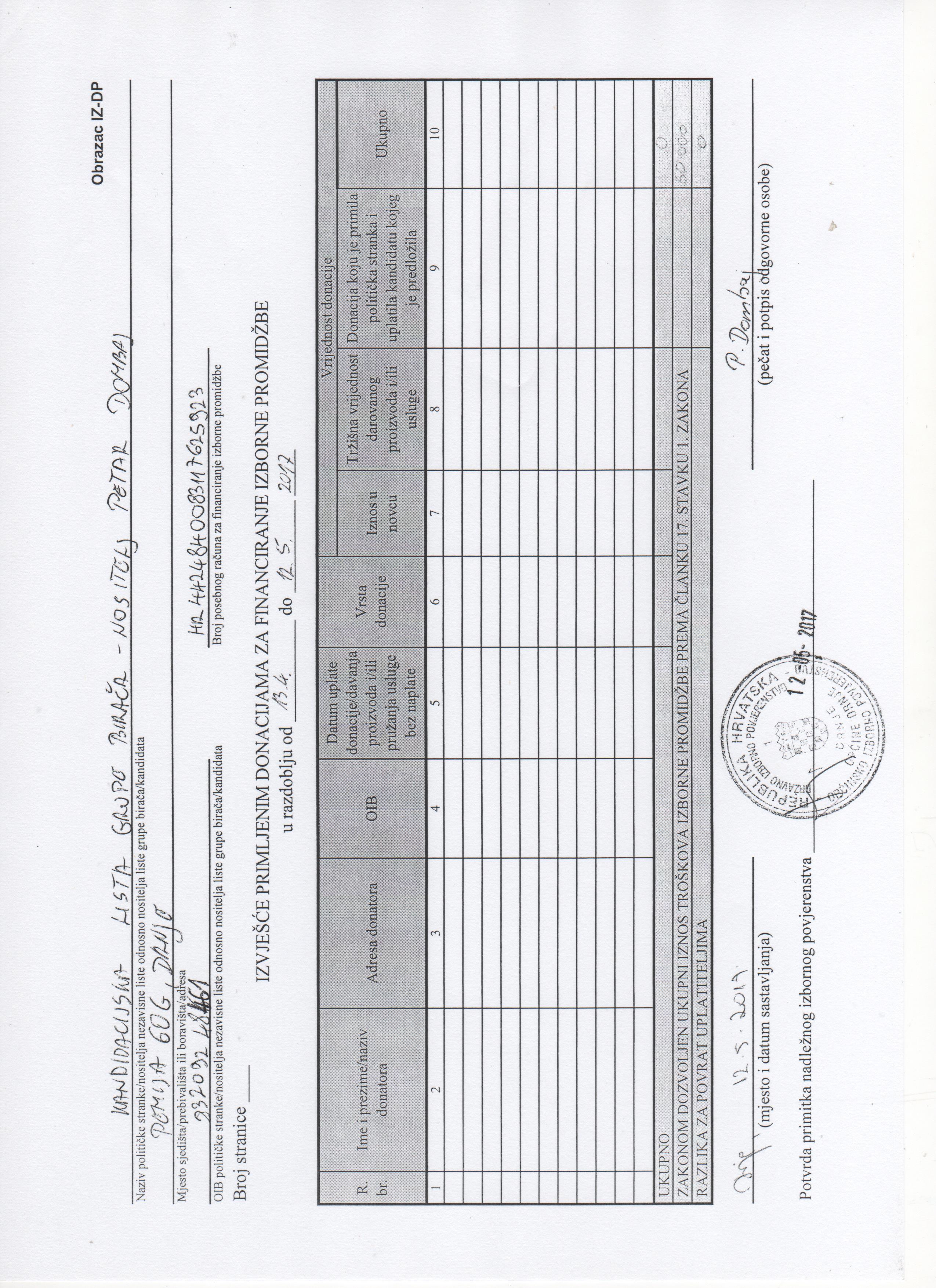 Početna stranica » Priopćenja i najave » Financijska izvješća za financiranje izborne promidžbe- Petar Dombaj kandidat za načelnika Općine Drnje